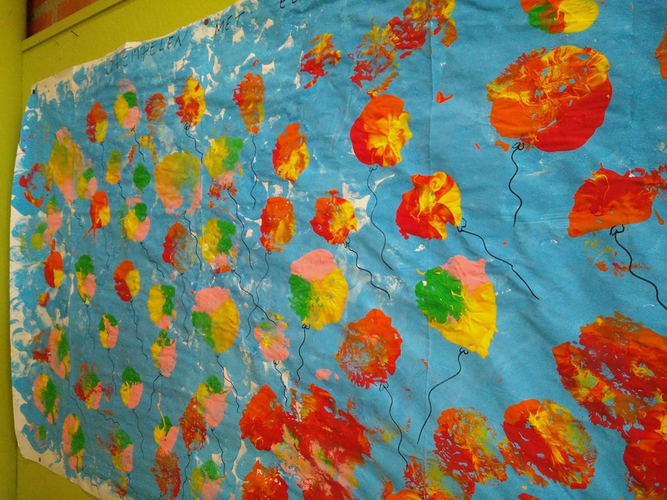 Hierna maakte we er prachtige ballonnen van voor op ons raam!